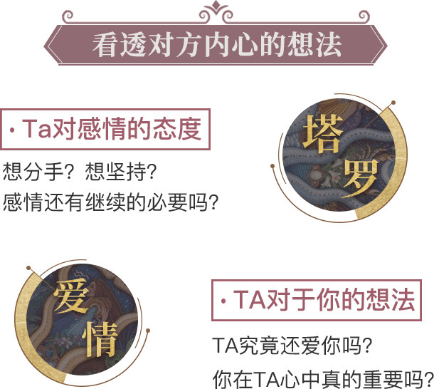 塔罗牌算的真的是太准了,完全说出了我当前感情存在的问题,也给了我建议,我知道该怎么做了!鲁*女士